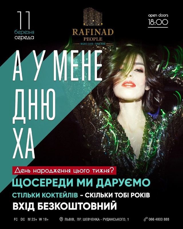 Найщасливіші люди — ті, хто святкує свою днюху в Rafinad People Tusa Bar & Night Club!