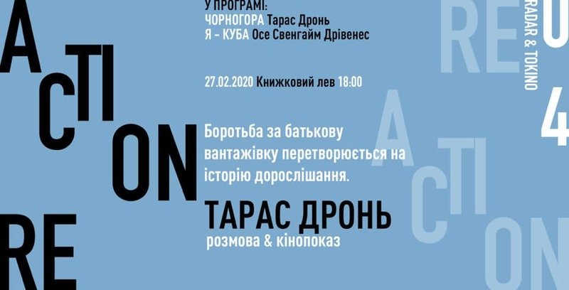 Save the date! Заключний показ та artist talk в рамках зимового RE-ACTION відбудеться 27 лютого о 18:00. На нас чекає перегляд “Чорногори”, - камерної та чесної історії дорослішання, знятої на плівку, а також документального фільму “Я - Куба”, що розповідає історію дітей, які зростають «євросиротами». Після перегляду планується розмова з режисером Тарасом Дронем. Вхід вільний!