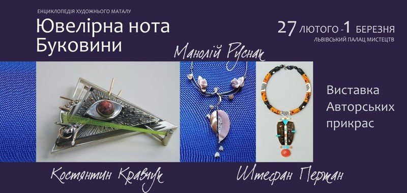 Запрошуємо відвідати виставку авторських прикрас «Ювелірна нота Буковини», яка відбудеться у рамках ювелірної виставки «ЕлітЕКСПО» з 27 лютого по 1 березня у Львівському палаці мистецтв. Організатори заходу «Енциклопедія художнього металу» та виставкова компанія ПрАТ «Гал-ЕКСПО» представлять ювелірне ремесло Гуцульщини та Буковини, яке не залишить байдужими поціновувачів цього мистецтва.