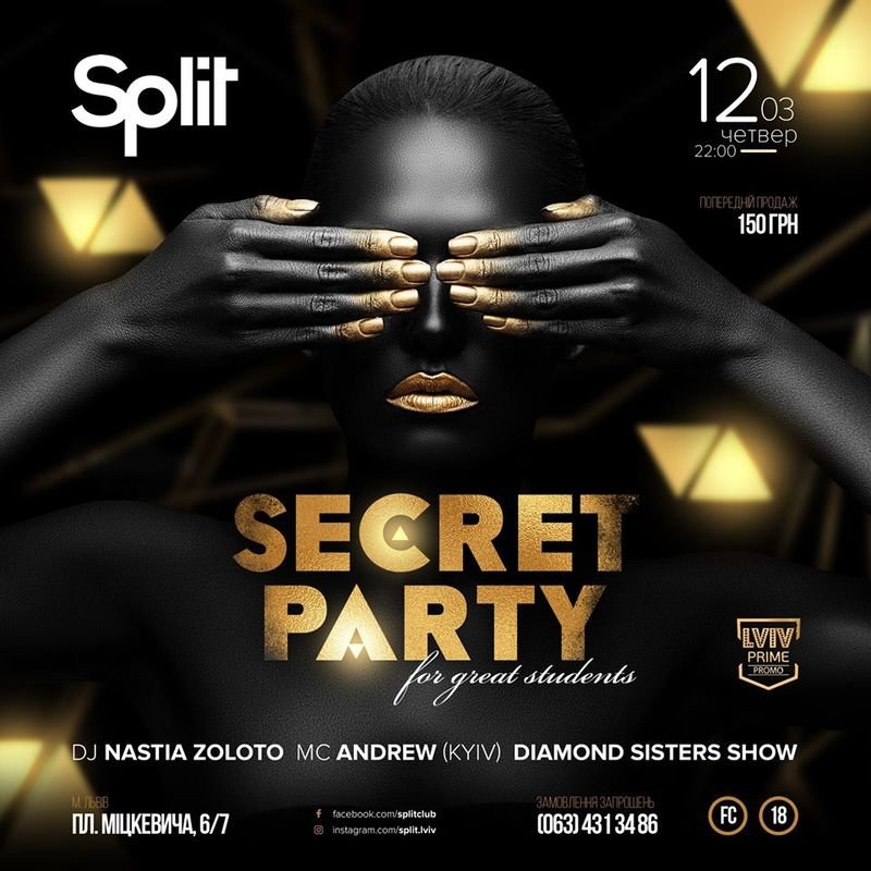 Запрошуємо всіх 12 березня відвідати вечірку в європейському стилі. Ми стараємося, щоб Ваш відпочинок був максимально цікавим, культурним та незабутнім. Разом з Split Lviv подаруємо емоції, які ніхто не зможе забути.В цьому допоможуть наші зіркові гості: вражаюча DJ Nastia Zoloto харизматичний Andrew МС та яскраві Diamond sisters show і це ще не все, тому що все інше ми залишаємо в секреті
