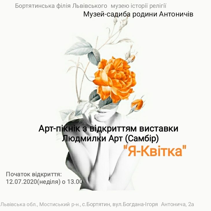 Вже цієї неділі, 12 липня, у Бортятинській філії Львівського музею історії релігії молода талановита художниця Людмилка Арт (Людмила Горбачик) презентує виставку «Я – Квітка».