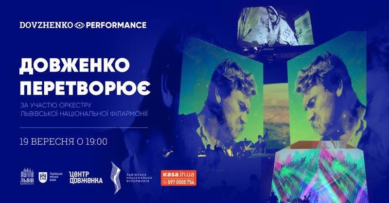 Музичне дійство "Довженко перетворює" відбудеться 19 вересня о 19:00 год. у Центрі Довженка. В програмі перегляд кращих кіноробіт метра під музичний супровід від оркестру Львівської національної філармонії.