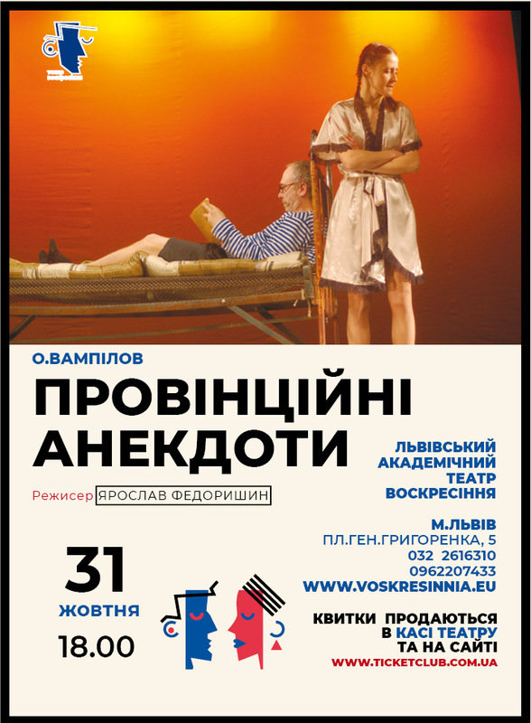 Львівський академічний театр Воскресіння щиро запрошує на чудову виставу «Провінційні анекдоти» О.Вампілов.