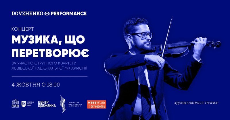 Запрошуємо Вас на музичне дійство «Музика, що перетворює», яке відбудеться 4 жовтня о 19:00 у Центрі Довженка.