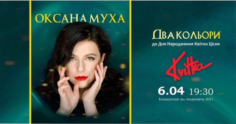 У вівторок, 6 квітня, співачка, переможниця телепроекту «Голос країни», заслужена артистка України, солістка Львівської національної філармонії Оксана Муха представить у рідному Львові одну із найкращих своїх концертних програм – «KVITKA: ДВА КОЛЬОРИ», присвячену легендарній американській співачці українського походження Квітці Цісик, якій 4 квітня 2021 року було б лише 68 років… Концерт відбудеться у супроводі оркестру на сцені Львівської національної філармонії імені Мирослава Скорика. Початок – о 19:30.