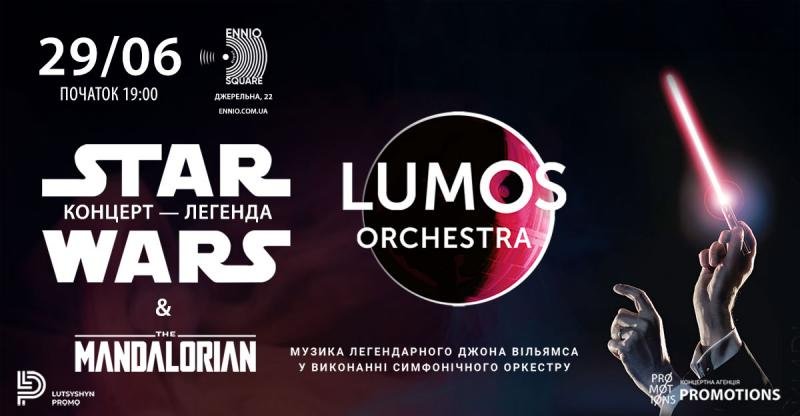 29 червня о 19:00 у Ennio Event Square симфонічний оркестр «LUMOS Orchestra» виступить із концертом-легендою «Star Wars & The Mandalorian».