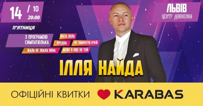 14 жовтня неймовірно талановитий та добре відомий співак Ілля Найда виступить у Центрі Довженка на Сихові!