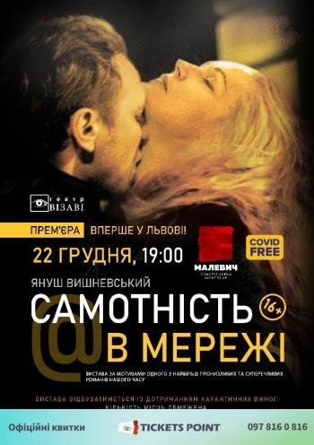 Прем'єра! Вперше у Львові! Головний польський бестселер початку XXI століття,найвідоміший і самий неоднозначний роман Януша Вишневського "Самотність в Мережі" - це історія в листах про заборонену і таку жадану любов.Один з найбільш пронизливих і спірних романів століття.