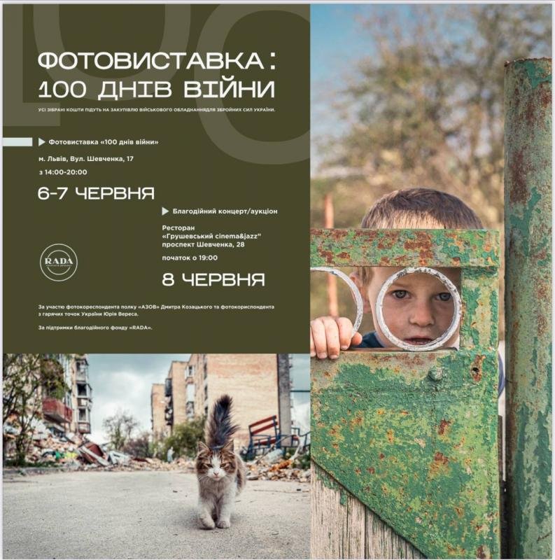 У Львові відбудеться фотовиставка «100 днів війни», де збиратимуть кошти для ЗСУ 6-7 червня з 14:00 до 20:00 на вул. Шевченка, 17 у Львові відбудеться фотовиставка «100 днів війни».