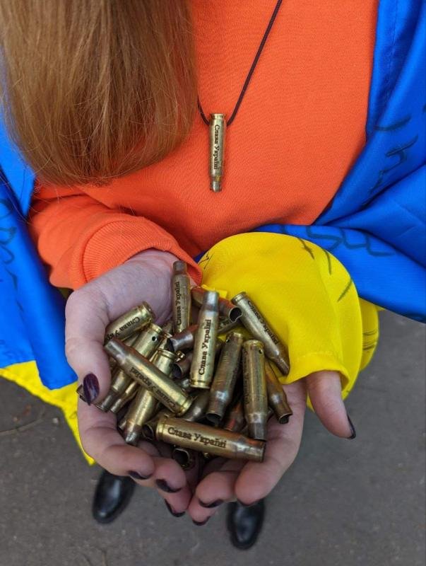 - 30 штук гільз з гравіруванням "Слава Україні", відстріляних снайпером, які можна використати як кулон або брелок.