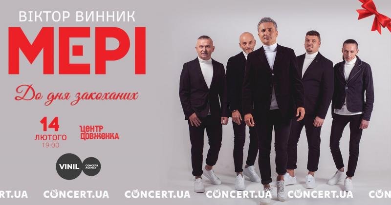 У день всіх закоханих, 14 лютого, Віктор Винник і гурт МЕРІ запрошує у Центр Довженка на найромантичніший концерт цієї зими. Початок о 19:00, повідомили організатори VINIL Concert agency.