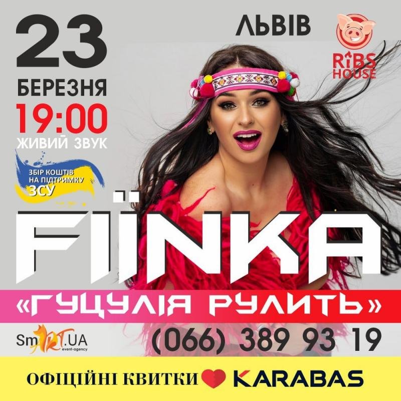 23 березня о 19.00 у RIBS HOUSE LVIV відбудеться концерт виконавиці з Івано-Франківська FINKA «ГУЦУЛІЯ РУЛИТЬ». Захід пройде у межах туру містами України. Його мета підтримка альбому та популяризація гуцульської культури. І звісно ж, збір коштів для наших захисників.