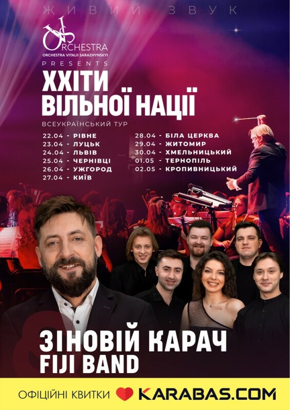 ХХІти ВІЛЬНОЇ НАЦІЇ ВСЕУКРАЇНСЬКИЙ ТУР Зіновій Карач, FIJI Band, Найяскравіший симфонічний оркестр Віталія Саражинського Orchestra.VS