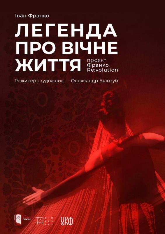 «Легенда про вічне життя» - філософські роздуми про життя людини як постійну боротьбу. Але силу на цьому нелегкому шляху кожній людині дає кохання. Якщо ж воно нерозділене, то людина стає безсилою. Зрада та брехня йдуть поряд із головним героєм протягом дійства.У виставі поєднуються автентичні пісні, авторські твори, плачі та співані імпровізації.Іванові Франкові, як вічному революціонеру, дали вічний вогонь. І він, під прицілом безумства того часу ніс вічний вогонь. Смертній людині - божественну місію. Але смертний не може нести вічний вогонь, бо його життя має початок і кінець. Вічний належить вічності!Смертний Франко проніс «божественний вогонь» скільки міг. Його «Легенда про вічне життя» філософські роздуми, написані зрілою людиною, яка горить у нескінченних життєвих випробуваннях і роздумує, про вічне життя! Чи можливо жити вічно але серед бурі пристрастей, а не на гармонії та любові, яких на цій землі годі віднайти…