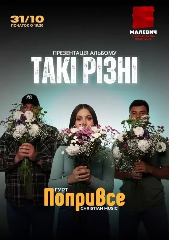 Український християнський гурт «ПоприВсе» 31.10.24 в concert arena MALEVICH презентує свій другий альбом «Такі Різні». Це 12 мотиваційних треків в стилі інді-поп, що дарують надію та дозволяють побачити світло, яке зцілює.