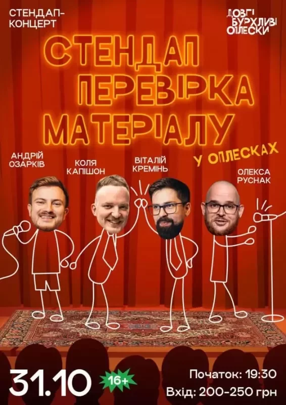 Запрошуємо на перевірку матеріалу, де коміки виступатимуть зі своїми новими жартами, докручують старі та смішать вас. Спокійний стендап вечір у хорошій компанії.