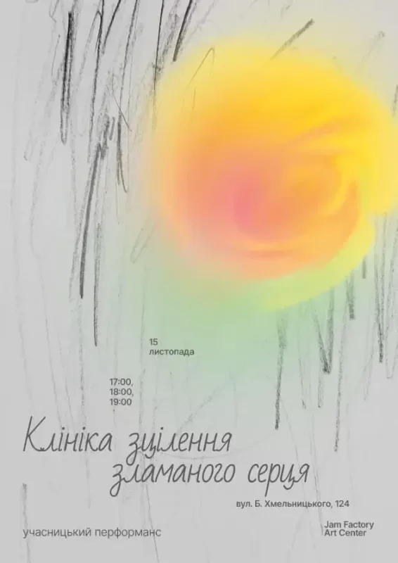 Клініка зцілення зламаного серця – це камерний імерсивний перформанс, в якому перформерки зустрічаються із учасниками/цями та діляться саморобними способами емоційної стабілізації через історії, фізичні практики, чуттєві досвіди тощо. Перформанс побудований як нелінійна серія практик для невеликої кількості відвідувачів, що відбуваються одночасно в декількох камерних “станціях”. На відміну від медичної царини, що націлена на лікування, у клініці зцілення зламаного серця йдеться про мистецьке дослідження близькості із іншим, яке фокусується на особистих способах турботи про себе в умовах сценографічної камерності.