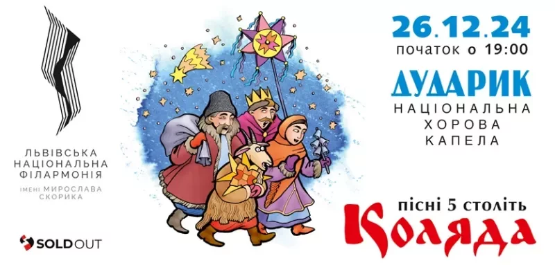 Національна академічна чоловіча хорова капела «Дударик» запрошує на новітні коляди, різдвяні гімни, архаїчні щедрівки і віншування. Колядники, різдвяна оркестра – створять феєрію Різдва.