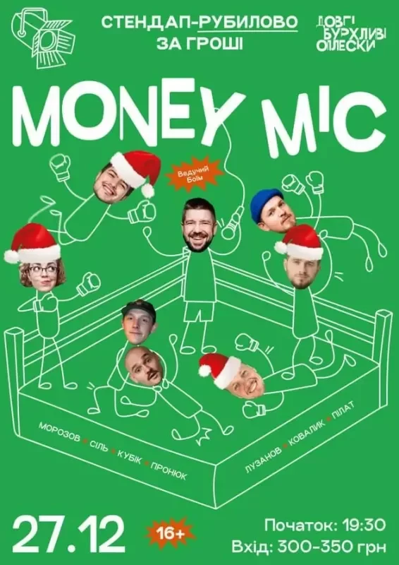 Money Mic – це шоу, на якому стендап-коміки змагаються своїми кращими жартами за приз, а глядачі довгими бурхливими оплесками обирають переможця.