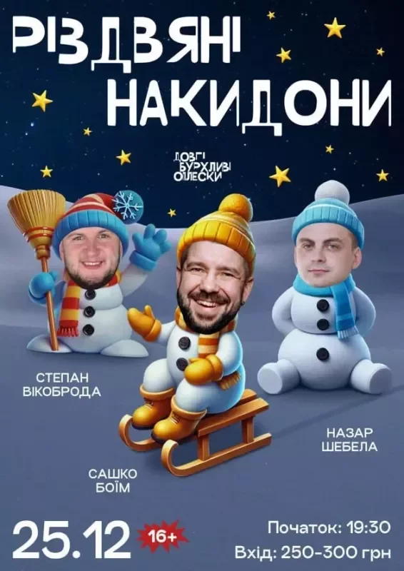 Шоу "Накидони" - імпровізаційний формат, в якому коміки знайомляться з глядачами, обговорюють новини і роблять свої заготовки смішнішими! Глядачі можуть пропонувати свої новини і весело проводити вечір в теплій атмосфері!