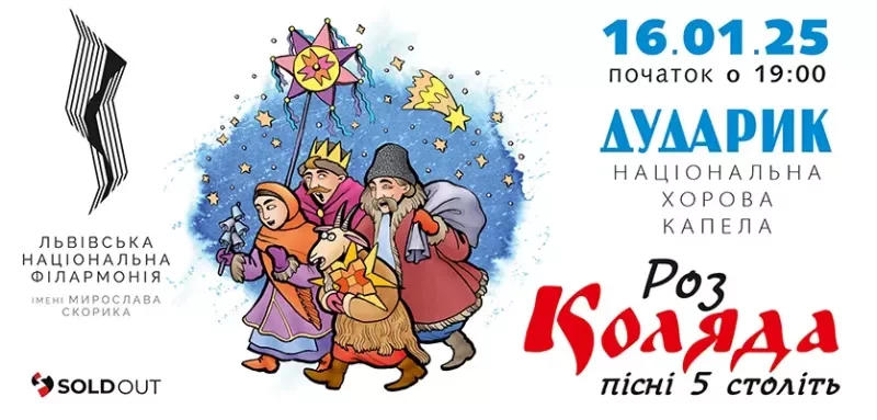 Національна академічна чоловіча хорова капела «Дударик» запрошує на новітні коляди, різдвяні гімни, архаїчні щедрівки і віншування. Колядники, різдвяна оркестра – створять феєрію Різдва.