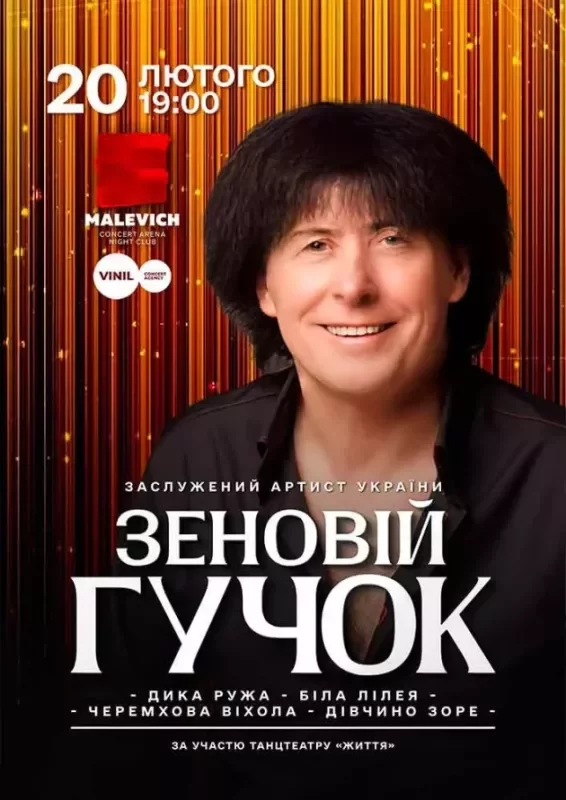 До речі, зверніть увагу на дату, в цей день ще не згасає вогник радості від свята Закоханих. Тому радимо подарувати цей концерт своїй другій половині. Впевнені, що квиток на захід, де співатиме Зеновій Гучок, буде кращим подарунком для коханої людини.