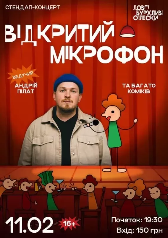 На вас чекають нові жарти, кумедні історії та імпровізація. Приходьте посміятися і провести приємний вечір у Довгі Бурхливі Оплески