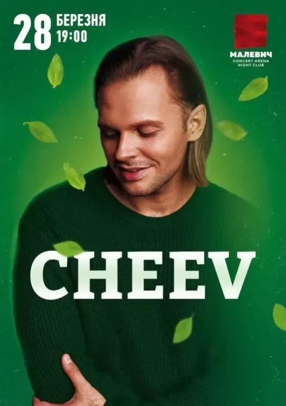 На вас чекатиме незабутній вечір у компанії улюбленого артиста. Чуттєвий та романтичний Cheev занурить у світ, де немає місця зневірі та розчаруванню, натомість панують світло, легкість та оптимізм. Приходьте, щоб разом з кумиром заспівати улюблені «Мрієшся», «Печаль», «Іминімі», «Пазл», суперхіт «Гарно так» та інші проникливі треки. Це буде ваш вечір. До зустрічі!