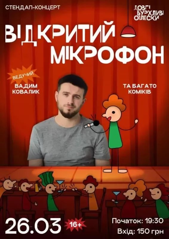 На вас чекають нові жарти, кумедні історії та імпровізація. Приходьте посміятися і провести приємний вечір.