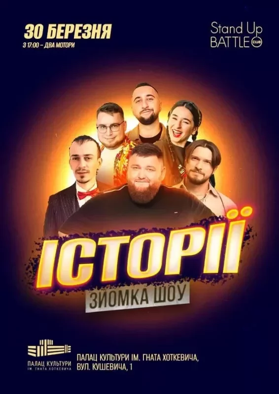 «Історії» – це імпровізаційно-комедійне шоу, де коміки та гості у форматі живої розмови обговорюють між собою історії з життя та жартують про це.