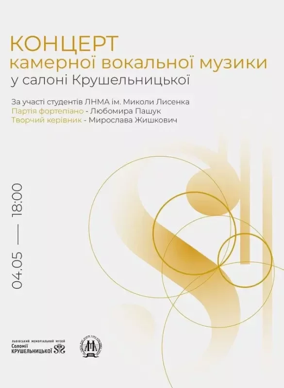Запрошуємо на концерт камерної вокальної музики у салоні Крушельницької, присвячений світлому образу матері — тихій молитві, щирій подяці, глибокій пошані.