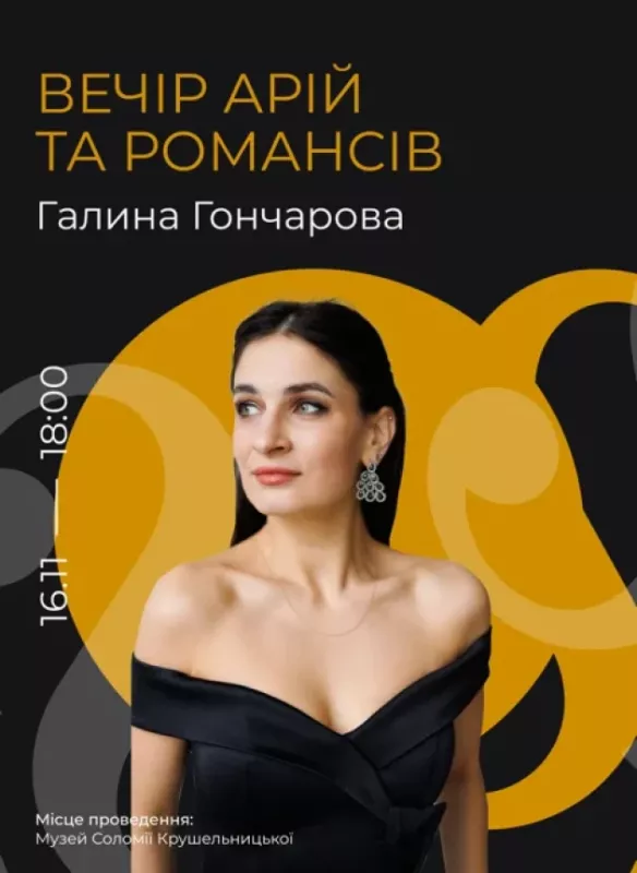 Музей Соломії Крушельницької у Львові запрошує на камерний вечір вокальної музики за участі вокалістки Галини Гончарової (сопрано) у супроводі піаністки Олександри Менцінської.