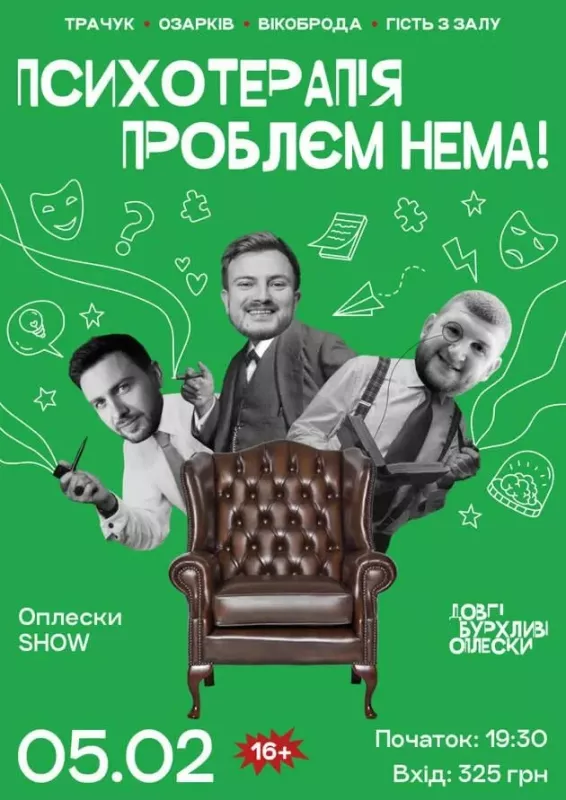 На сцені: професійні коміки Озарків Андрій, Степан Вікоброда та професійний гештальт-терапевт Роман Трачук.