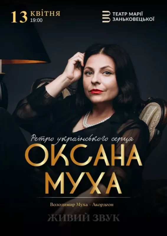 Заслужена артистка України, переможниця телепроєкту «Голос країни» та володарка Гран-прі Першого Міжнародного конкурсу українського романсу імені Квітки Цісик – Оксана Муха з великим концертом у Львові!