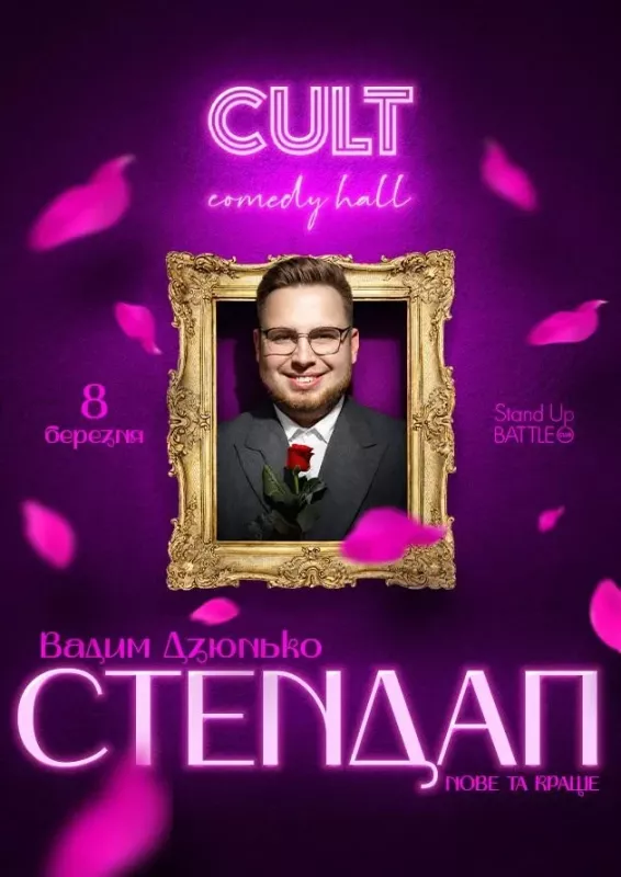 Хочете приємно провести вечір і добряче посміятися? Запрошуємо вас у Cult Comedy Hall на стендап вечір від Вадима Дзюнька! На сцені — нові жарти та кращі історії від справжньої «окраси нашого колективу». Гарантуємо вам незабутню атмосферу та класні емоції. Приходьте зарядитися позитивом і провести вечір, який точно запам’ятається.