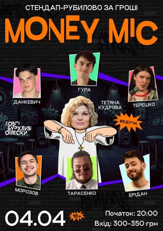 Money Mic – це шоу, на якому стендап-коміки змагаються своїми кращими жартами за приз, а глядачі довгими бурхливими оплесками обирають переможця.