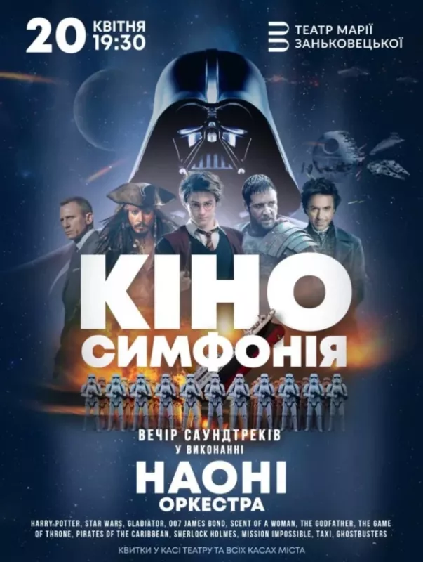 НАОНІ кличе вас у кіно! Насолоджуватися улюбленими мелодіями з кінофільмів можна по-різному: слухати їх у навушниках, повертатися до них під час перегляду улюблених стрічок або додавати до власних музичних плейлистів. Проте жоден із цих способів не здатний передати ту силу емоцій і атмосферу, яку дарує живе виконання на сцені.