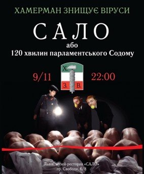 Концерт під назвою «Сало або 120 хвилин парламентського Содому» - це кардинально нова, створена під впливом творчості П. Пазоліні авторська концепція, яка зламає усі Ваші стереотипи. За словами самого учасника гурту Альберта Цукренка, «основним структурним елементом шоу став аналіз схожості лідерів українського політикуму з героями нових і старих пісень гурту.»