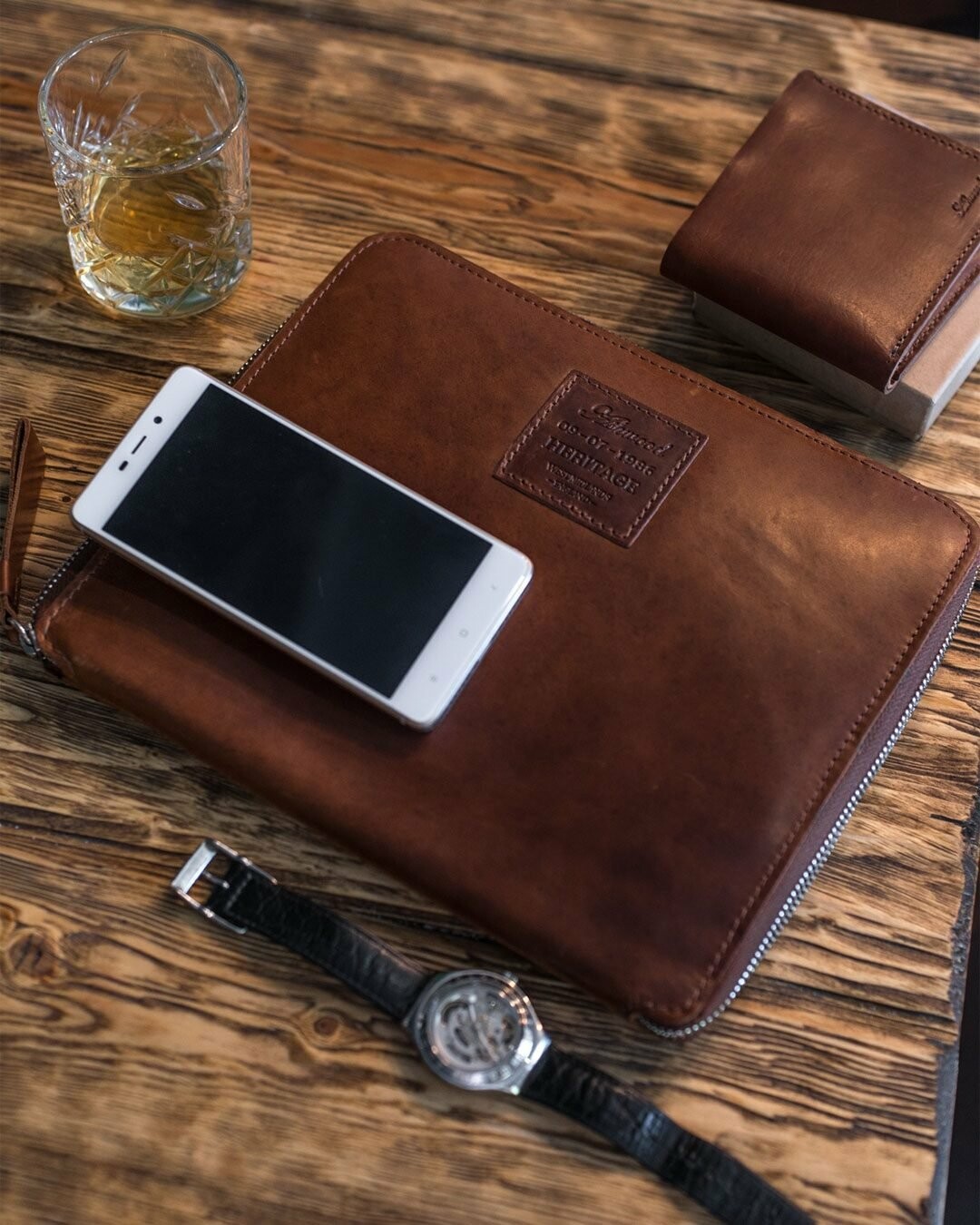Изделие выполнено исключительно в деловом стиле. Преимущественно однотонная палитра, благородная и высококачественная кожа. А главное — безупречная работа мастера по изготовлению аксессуара. Стандартным размером считается формат А4. Но, под конкретный запрос получится найти вариант в диапазоне 10-14 дюймов.
