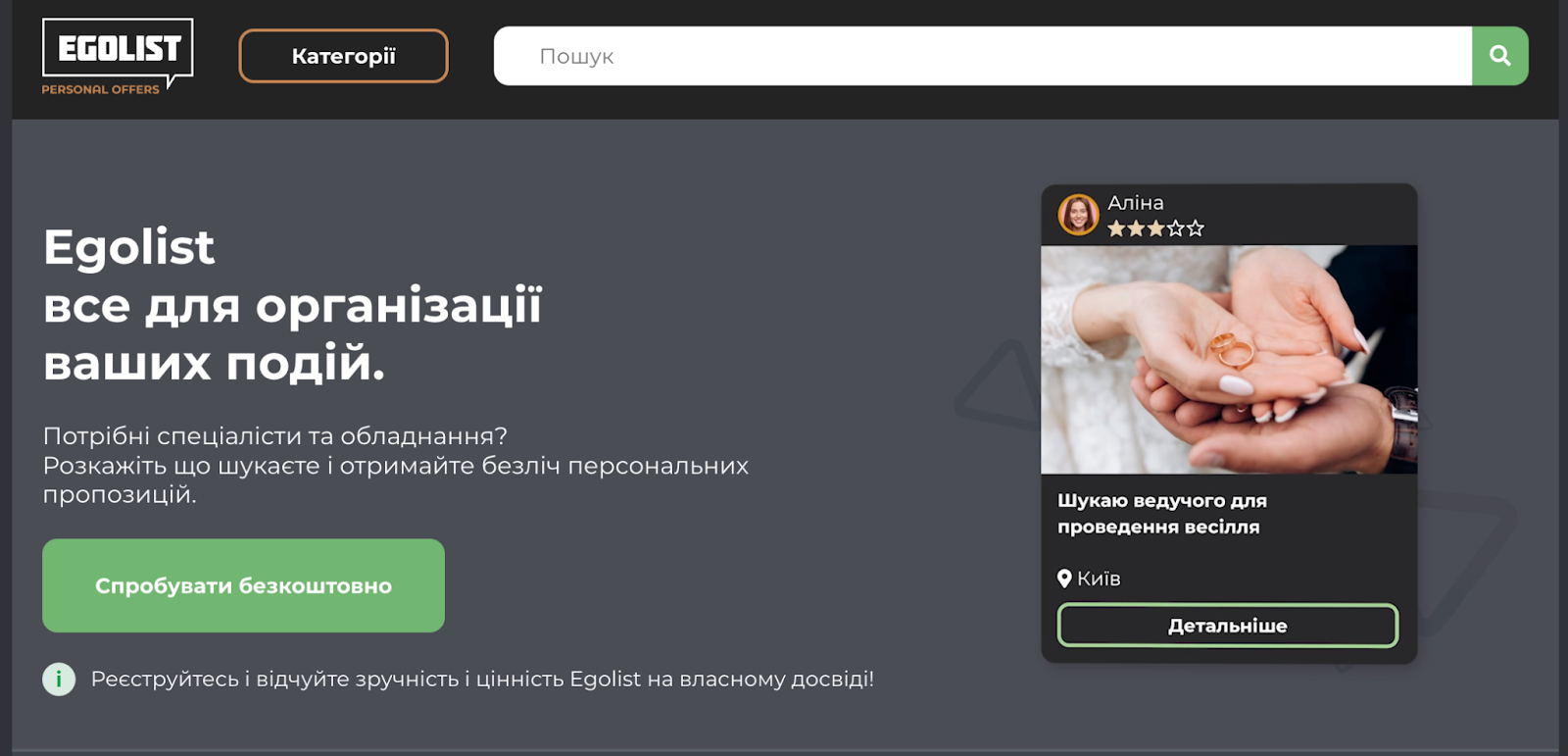 Egolist - це платформа, на якій Користувачі можуть розміщувати свої оголошення про пасажирські перевезення. Оголошення можуть містити інформацію про маршрут, дату та час відправлення, тип транспорту, кількість місць та ціну. Надалі, перевізники можуть зв'язатися з Користувачами через чат для обговорення деталей та узгодження умов.