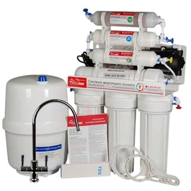 - Зворотний осмос – багаторівнева фільтрація, що забезпечує глибоке очищення від домішок та бактерій.