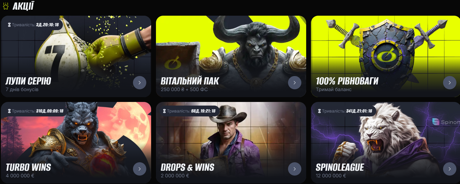 Обов'язково звертай увагу на кожну акційну пропозицію. Так новачки онлайн казино Бетон отримують вітальний бонус до 250 000 гривень. Одночасно пропозиція передбачає й нарахування до 500 фріспінів. Безкоштовні обертання в вітальному пакеті онлайн казино Бет Он надаються для топових релізів знаменитих вендорів.