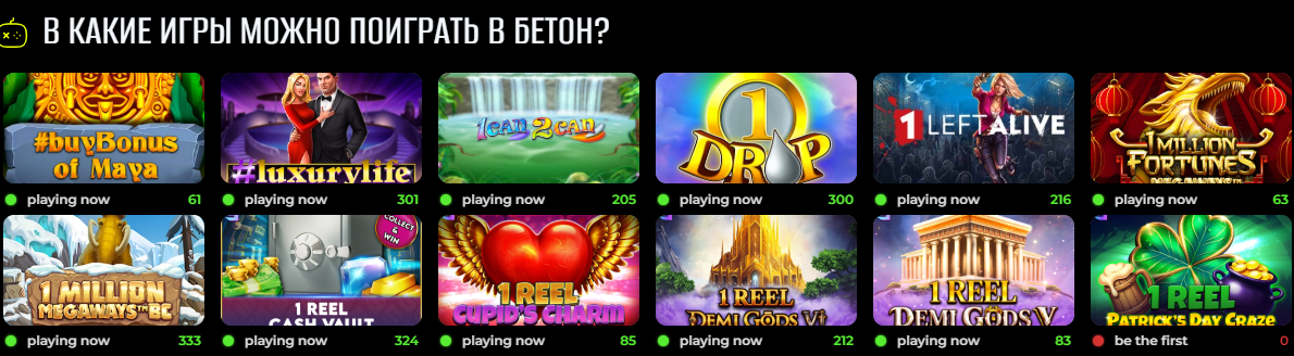 Казино онлайн на гроші Бет Он пропонує понад 6000 азартних ігор. До сайту підключені провідні світові провайдери, що забезпечує доступ до найкращих ігор в Україні. У каталозі онлайн казино БетОн представлені: