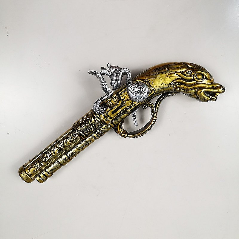 Піратський пістоль «Голова дракона» — це справжній скарб для маленького хороброго капітана. Він ніби зійшов із легенди! Дракон на руків’ї оберігає пірата від ворогів, а при натисканні на курок лунає справжній піратський звук «пострілу».