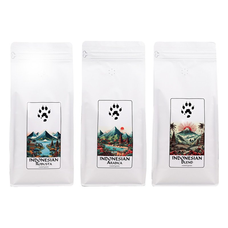 • Indonesian Robusta – кава з характером: міцна, енергійна, із виразними шоколадними та горіховими тонами. Вона ідеальна для тих, хто починає свій день з потужного ковтка енергії.