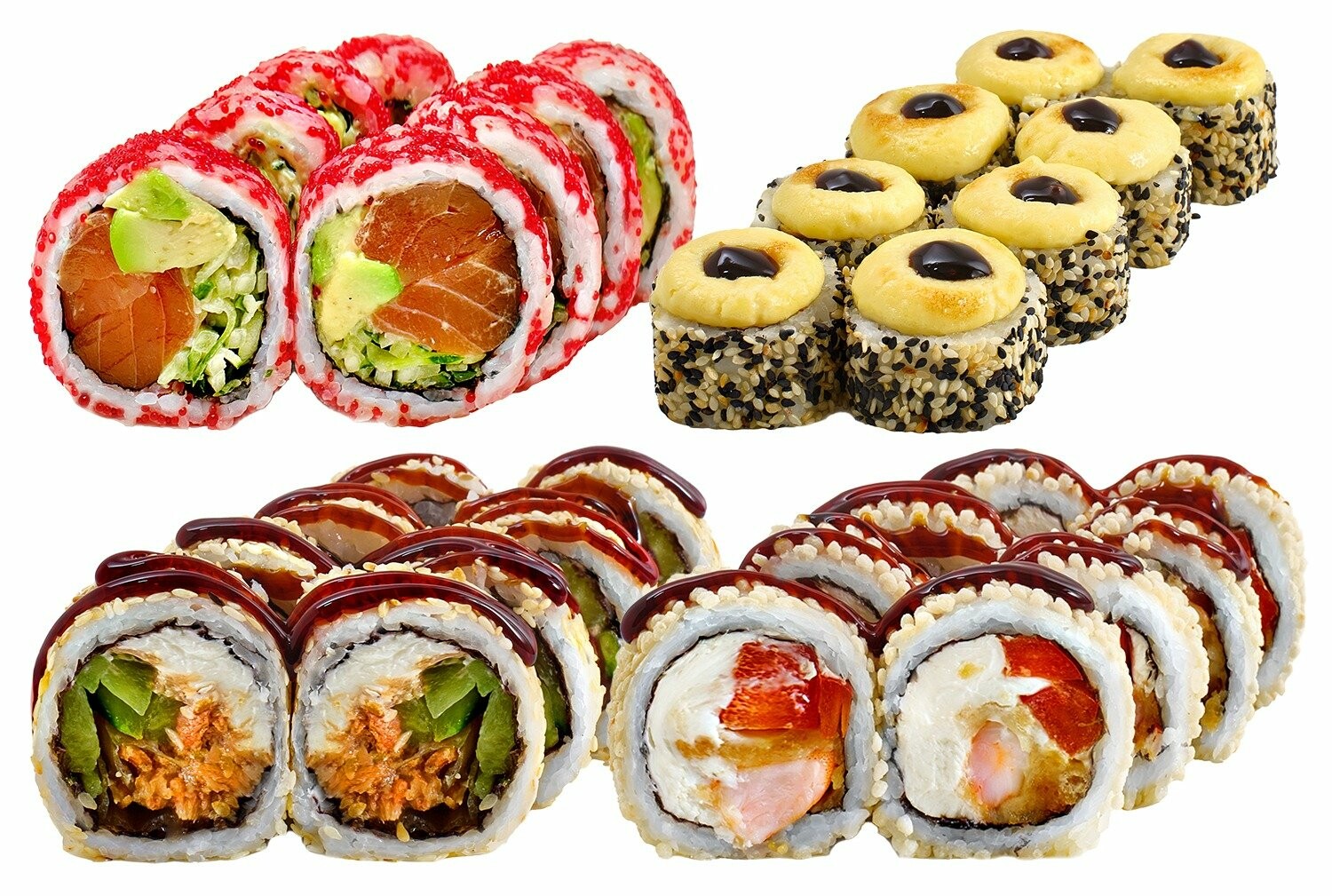 - Запечені. Теплі, з ніжною сирною шапочкою зверху. Мають насичений, більш домашній смак. Добре пасують тим, хто не впевнений щодо сирої риби.