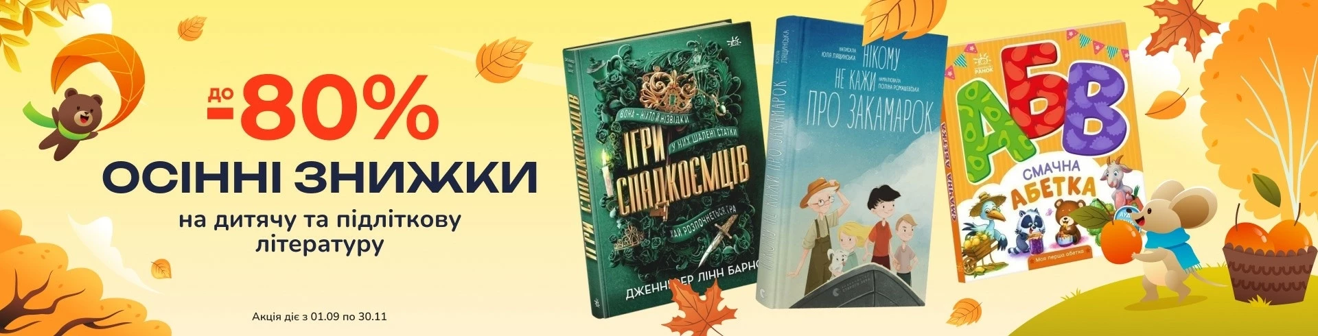 Осінь — найкращий час, щоб поповнити домашню полицю новинками. А знижки до 80% — чудовий стимул зробити це саме зараз. Адже книга, куплена вигідно, дарує подвійне задоволення — і від читання, і від усвідомлення, що зробив розумну покупку.