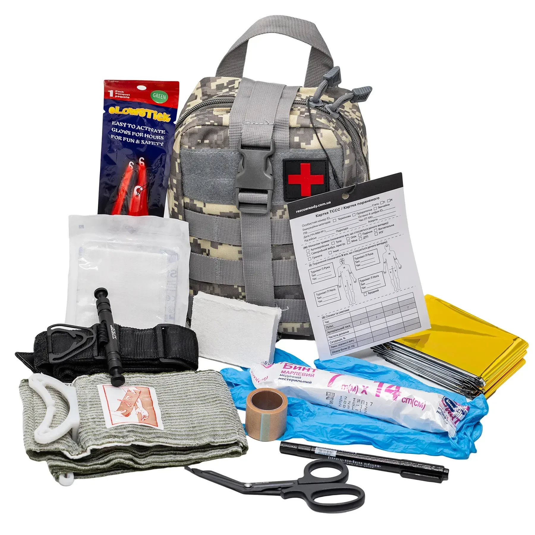 Головна мета такої аптечки — врятувати життя в перші хвилини після травми: зупинити кровотечу, забезпечити дихання та стабілізувати стан постраждалого до прибуття медиків.