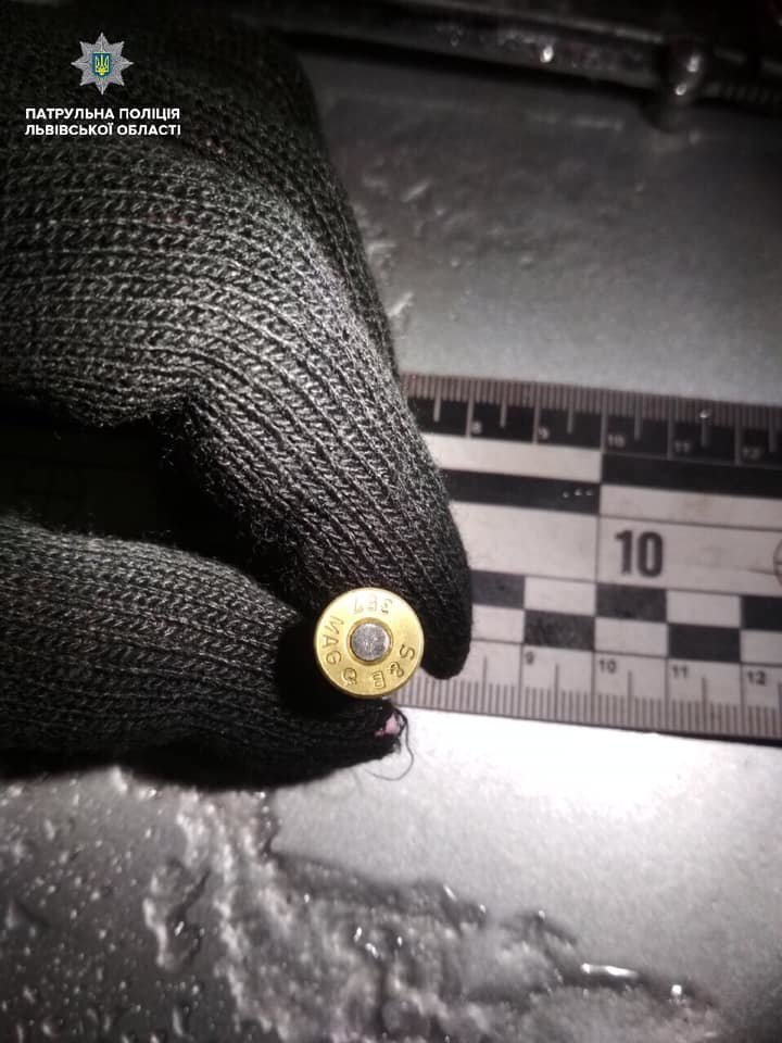 На місце інциденту прибула слідчо-оперативна група Сихівського відділу поліції. Експерт вилучив підозрілий предмет із спорядженими набоями. Водій авто не зміг пояснити походження предметів, а згодом почав агресивно себе поводити та погрожувати оточуючим. Поліції довелося застосувати кайданки.