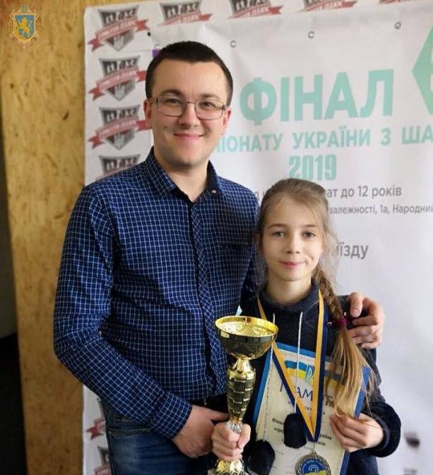 На змаганнях юну шахістку підтримав її тренер Андрій Греха.